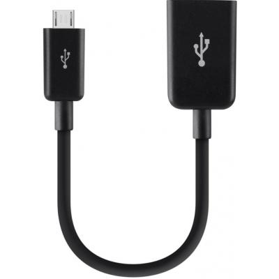 Кабель USB 2.0 AF to Micro 5P OTG 0.12m Belkin (F2CU014btBLK) - якісний кабель від відомого виробника. Виготовлено його із добротних провідників та наділено чудовим екрануванням, щоб забезпечити стабільне передавання даних впродовж тривалого часу. Він оснащений із одного боку штекером microUSB, а з іншого стандартним USB гніздом, що дозволить підключити флешку, або 3G модем до вашого планшету чи смартфону. Кабель працюватиме, якщо ваш пристрій підтримує функцію OTG.