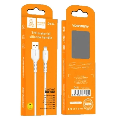 Кабель зарядки DENMEN D42L 2.4A 1M USB – Lightning для мобільних пристроїв Білий Це надійний та ефективний аксесуар для заряджання та передачі даних для вашого мобільного пристрою. Завдяки своїм високим технічним характеристикам і універсальній сумісності.