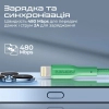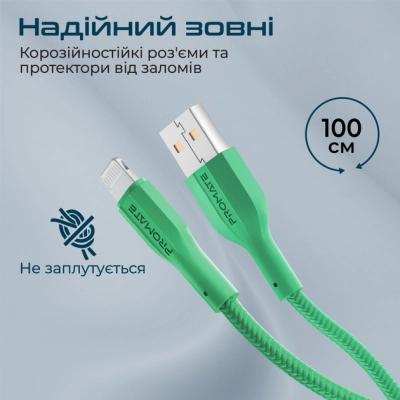 Тип - кабель, Тип конектора 1 - USB, Тип конектора 2 - Lightning, довжина - 1 м, Номінальний струм - 2 А, Колір - зелений