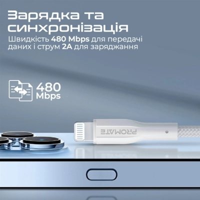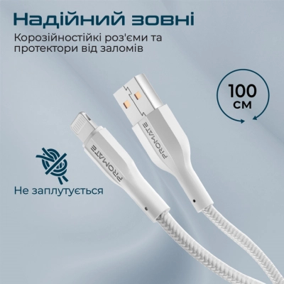 Тип - кабель, Тип конектора 1 - USB, Тип конектора 2 - Lightning, довжина - 1 м, Номінальний струм - 2 А, Колір - білий