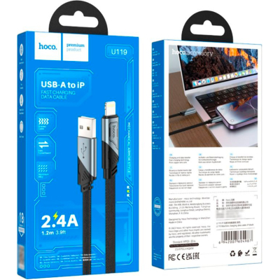 Дата кабель USB 2.0 AM to Lightning 1.2m 2.4A nylon aluminum U125 black HOCO (6942007604987)