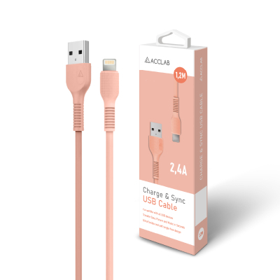 Кабель синхронізації ACCLAB USB to Lightning зручної довжини 1.2 м незамінна річ для заряджання телефонів та планшетів. Виготовлений із пластичного екологічного матеріалу TPE. Конектор спеціальної гнучкої форми. Підтримує швидку зарядку 2.4А