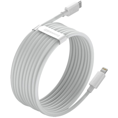 Baseus Simple Wisdom Data Cable Kit USB to iP PD 20W (2 PCS / Set) 1.5 м White ─ набір з 2 кабелів для заряджання акумулятора, передачі даних та синхронізації мобільних пристроїв з роз'ємами Lightning та Type-C. Кабелі Simple Wisdom підтримують протоколи швидкого заряджання, потужність до 20 Вт та передачу даних, швидкість якої досягає до 480 Мбіт/с. З цими параметрами заряджання та синхронізація пристрою потребують мінімальних витрат часу.