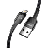 Тип - кабель, Тип конектора 1 - USB, Тип конектора 2 - Lightning, довжина - 2 м, Номінальний струм - 2.4 А, тканинне обплетення, Зі світлодіодним індикатором, зручний у використанні вночі, Колір - чорний