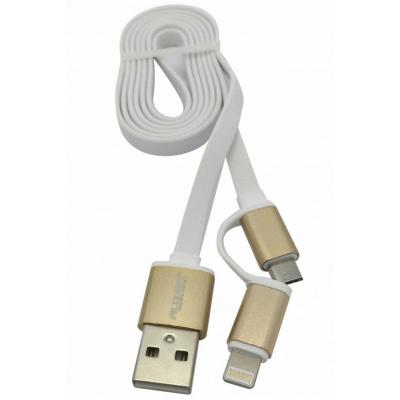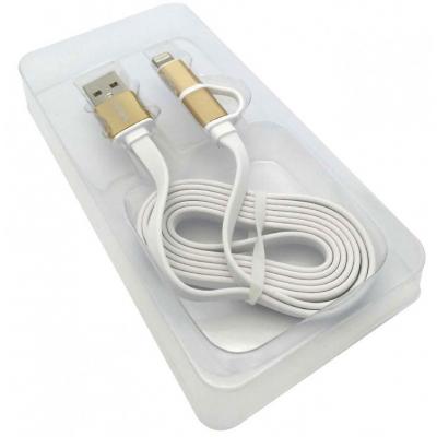 2 в1. 2-х стандартний кабель дозволяє заряджати не тільки iPhone, але і всі інші пристрої з роз'ємом micro USB, особливо зручний у поєднанні із зовнішнім акумулятором. Міцні металеві утримувачі. Забезпечено підвищена міцність, зносостійкість ізоляції кабелю. Посилений тип з'єднання шнура і роз'єму гарантує довгострокове використання. Відповідає стандартам для мобільних пристроїв. Кабель не заплутується завдяки спеціальному плоскому профілем шнура.