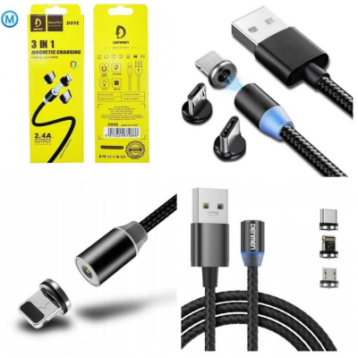 Кабель магнітний Denmen D09E 3 в 1 Lightning, Type-C, Micro-USB — універсальний магнітний кабель 3 в 1, який підійде для зарядки більості сучасних пристроїв.