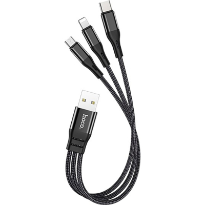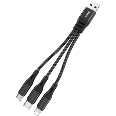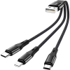 Тип - кабель, Тип конектора 1 - USB, Тип конектора 2 - micro USB, Lightning, USB Type-C, довжина - 0.25 м, Номінальний струм - 2.4 А, Колір - чорний