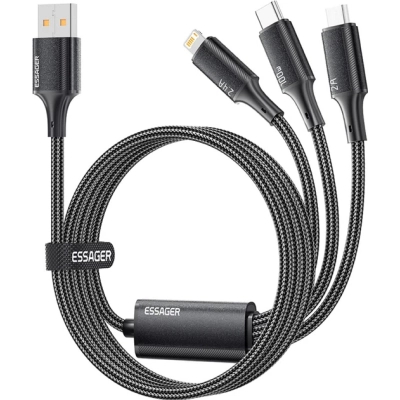 Кабель Essager 3 в 1 відрізняється широкою сумісністю. З його допомогою можна заряджати смартфони iPhone, Xiaomi, Huawei, Samsung та OPPO, планшети, зовнішні акумулятори та настільні вентилятори.