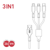 CB-23U3 — універсальний зарядний кабель 3-в-1, який має одразу три роз’єми: Micro USB, USB Type-C та Lightning. Ідеальний варіант для тих, хто користується кількома пристроями або хоче мати один кабель для всіх випадків. Підтримує струм до 3A, що забезпечує швидку та безпечну зарядку.