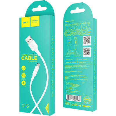 Дата кабель USB 2.0 AM to Micro 5P 1.0m 2A PVC X25 white HOCO (6957531080138)