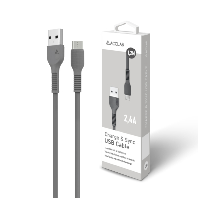 Кабель синхронізації ACCLAB AL-CBCOLOR-M1WT USB to Micro USB зручної довжини 1.2 м незамінна річ для заряджання телефонів та планшетів. Виготовлений із пластичного екологічного матеріалу TPE. Конектор спеціальної гнучкої форми. Підтримує швидку зарядку 2.4А