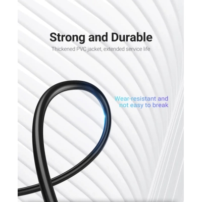 Посилена зносостійкість та ергономіка: Оболонка кабелю виготовлена з якісного потовщеного ПВХ (полівінілхлориду), який відзначається гнучкістю та стійкістю до розривів. Особливу увагу приділено місцям з'єднання дроту з конектором: подовжений до 11 мм посилений захист (хвостовик) запобігає переламуванню та розтріскуванню в найбільш вразливих зонах при частому згинанні, а ергономічна форма конекторів полегшує підключення та відключення кабелю.