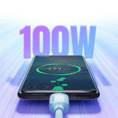 Тип - кабель, Тип конектора 1 - USB, Тип конектора 2 - USB Type-C, довжина - 1 м, тканинне обплетення, Колір - блакитний