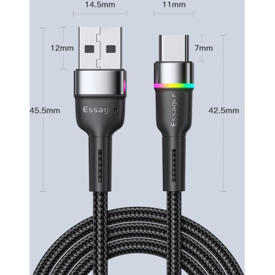Дата кабель USB 2.0 AM to USB-C 1.0m 3A LED black Essager (EXCT-XCD01)