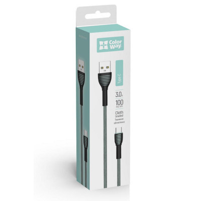 Тип - кабель, Тип конектора 1 - USB 2.0, Тип конектора 2 - USB Type-C, довжина - 1 м, Номінальний струм - 3 А, Колір - сірий