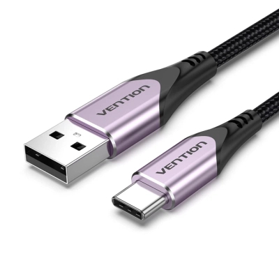 Кабель Vention USB-A на USB-C пропонує ідеальне поєднання естетичної привабливості та високопродуктивної функціональності, розроблений спеціально для користувачів, яким важливі надійність та швидкість. Завдяки довжині 1.5 метра цей кабель забезпечує оптимальний баланс між радіусом дії та зручністю організації кабелів, що робить його ідеальним для зарядки на робочому столі, використання в автомобілі або підключення до павербанків під час руху. Виразне фіолетове покриття на алюмінієвих конекторах у поєднанні з міцним чорним нейлоновим обплетенням відрізняє його від стандартних аксесуарів, додаючи стильну нотку до вашої колекції техніки. Спроєктований для підтримки сили струму до 3 Ампер, він гарантує, що ваші смартфони, планшети та інші пристрої, сумісні з USB-C, отримують живлення ефективно, підтримуючи популярні протоколи швидкої зарядки, такі як Qualcomm Quick Charge та Huawei FCP. Незалежно від того, чи синхронізуєте ви дані між ноутбуком і телефоном, чи підзаряджаєте батарею протягом напруженого дня, цей кабель забезпечує стабільну роботу.