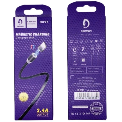 Кабель магнітний Denmen D09T – це універсальний магнітний зарядний кабель від Denmen з конекторами USB-A → USB-Type-C. Розрахований переважно на зарядку пристроїв з роз’ємом USB-C (смартфони, планшети, навушники, павербанки тощо).