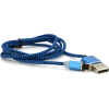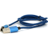 Тип - кабель, Тип конектора 1 - USB 2.0, Тип конектора 2 - Lightning, довжина - 1 м, тканинне обплетення, LED-індикатор рівня заряду, Колір - синій