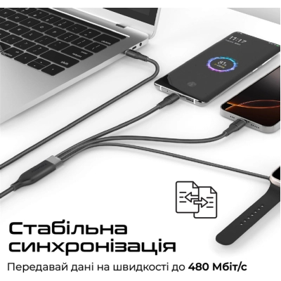Тип - кабель, Тип конектора 1 - USB Type-C, Тип конектора 2 - 2 х USB Type-C, довжина - 2 м, 100W, Колір - чорний