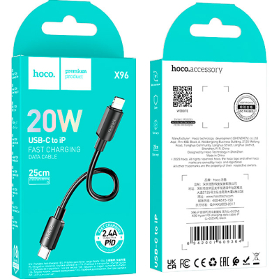Тип - кабель, Тип конектора 1 - USB Type-C, Тип конектора 2 - Lightning, довжина - 0.25 м, Номінальний струм - 2.4 А, Колір - чорний