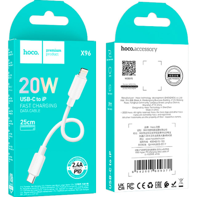 Дата кабель USB-C to Lightning 0.25m Hyper PD X96 white HOCO (6942007609371)