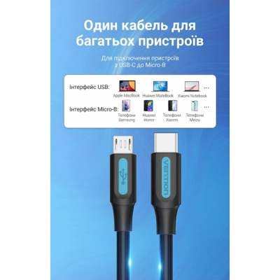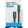 Кабель Vention USB-C на Micro USB (1,5 м, 2 А, підтримка OTG, передача даних 480 Мбіт/с), Чорний