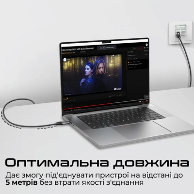 • Оптимальна довжина: Дає змогу під'єднувати пристрої на відстані до 5 метрів без втрати якості з'єднання.