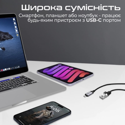 • Широка сумісність: Смартфон, планшет або ноутбук - CLink-RJ45 працюватиме з будь-яким пристроєм з USB-C портом.