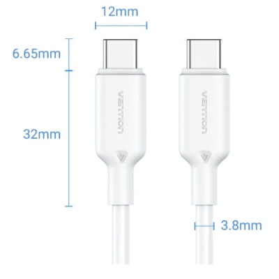 Тип - кабель, Тип конектора 1 - USB Type-C, Тип конектора 2 - USB Type-C, довжина - 1 м, 60 W, Колір - білий