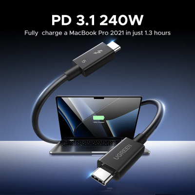 Дата кабель USB-C to USB-C 1.0m Thunderbolt 5 240W 5A 120Gbps 16/8/4K L703 black Ugreen (45996)