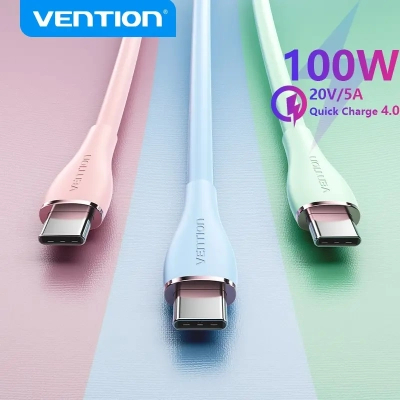 Тип - кабель, Тип конектора 1 - USB Type-C, Тип конектора 2 - USB Type-C, довжина - 1 м, Номінальний струм - 5 А, матеріал: силікон, 100W, QC 4.0, Колір - зелений
