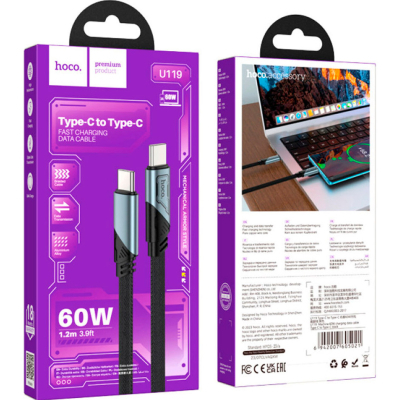 Дата кабель USB-C to USB-C 1.2m 60W nylon aluminum U119 black HOCO (6942007605021)