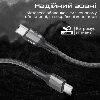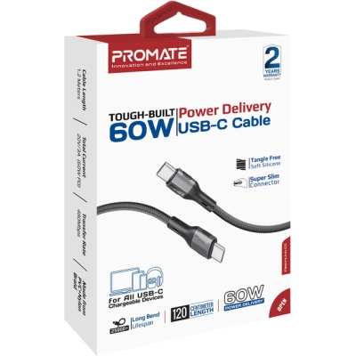 Тип - кабель, Тип конектора 1 - USB Type-C, Тип конектора 2 - USB Type-C, довжина - 1.2 м, 60 W, Колір - чорний