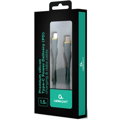 Тип - кабель, Тип конектора 1 - USB Type-C, Тип конектора 2 - USB Type-C, довжина - 1.5 м, Номінальний струм - 3 А, матеріал: силікон, 60 W, 480 Мбіт/с, Колір - зелений