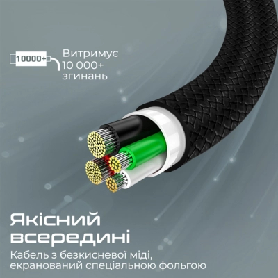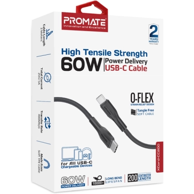 Тип - кабель, Тип конектора 1 - USB Type-C, Тип конектора 2 - USB Type-C, довжина - 2 м, Номінальний струм - 3 А, Колір - чорний