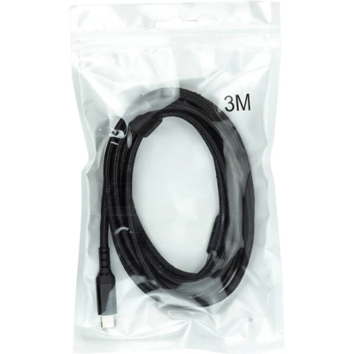 Високогнучкий кабель USB Type-C - USB Type-C для швидкої зарядки та передачі даних, чорний, довжиною 3 м.