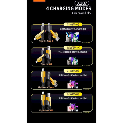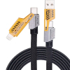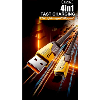 Дата кабель USB-C + USB-A to Lightning+USB-C 1.0m 65W X207 black WUW (6972573336524)