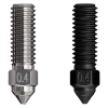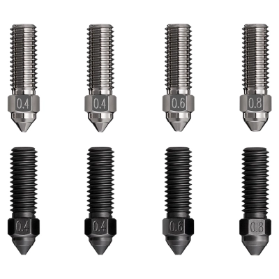 Набір складається з восьми сопел: два сопла з мідного сплаву, покритих нікелем, і два із загартованої сталі з діаметром 0.4 мм, а також по одному соплі з кожного матеріалу з діаметрами 0.6 та 0.8 мм. Ця різноманітна конфігурація сопел пропонує можливість тонкого настроювання ваших друкованих процесів, що є ключовим фактором для досягнення високоякісних результатів. Сопла з мідного сплаву, покриті нікелем, забезпечують стійкість до корозії та високу теплопровідність, що є важливим при роботі з широким спектром матеріалів. Загартовані сталеві сопла, у свою чергу, характеризуються підвищеною зносостійкістю, що робить їх ідеальним вибором для роботи з абразивними матеріалами.