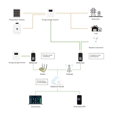 Модуль Wi-Fi Kit забезпечує бездротовий зв'язок між автономними інверторами та платформами моніторингу. Користувачі мають можливість віддаленого моніторингу та керування інверторами при використанні модуля Wi-Fi з додатком Smart ESS для Android|iOS або через веб-сервіс з ПК/ноутбук.