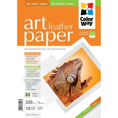 ColorWay A4 ART (ПМА220-10) - це фотопапір з яскравовираженою тісненою фактурою, яка імітує шкіру, має усі особливості і властивості матового паперу. Поверхня таких паперів чутлива до механічної дії.