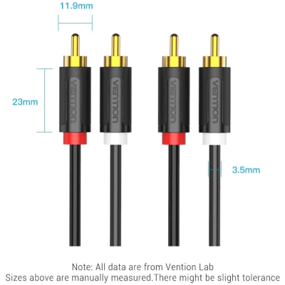 Кабель мультимедійний 2xRCA M to 2xRCA M 1.5m black VENTION (BCMBG)