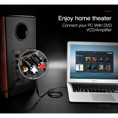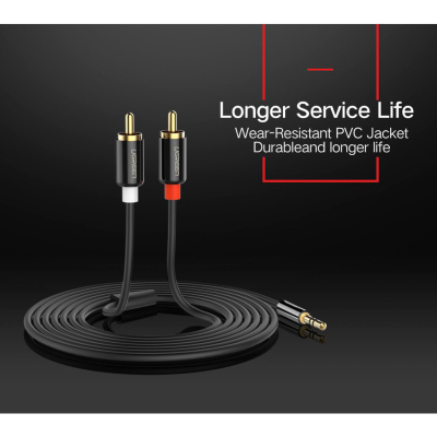 Кабель Ugreen AV116 3.5 mm to 2RCA Audio Cable призначений для з'єднання аудіовходів/виходів мультимедійних та аудіопристроїв (звукових адаптерів комп'ютерів, побутової аудіоапаратури тощо). Кабель Ugreen AV116 3.5 mm to 2RCA Audio Cable виготовлений із міді, а конектори поміщені в надійні металеві гільзи, що забезпечує тривалу роботу кабелю без збоїв.
