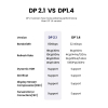 Підтримує високі роздільні здатності 16K при 30 Гц, 8K при 60 Гц, 5K при 60 Гц, 4K при 60 Гц/120 Гц/144 Гц, 2K при 120 Гц/165 Гц/24 І назад сумісний із DisplayPort 1.4, 1.3, 1.2. Одноекранний відеовихід 16K при 60 Гц (DSC), 10K при 60 Гц та подвійний екран 8K при 120 Гц, 4K при 144 Гц, триекранний дисплей для 10K при 60 Гц, 4K при 90 Гц.
