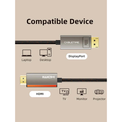 Кабель мультимедійний DisplayPort M to HDMI M 8K60Hz Cabletime (CA916405)