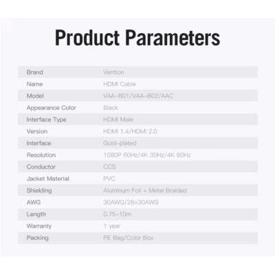 Кабель Vention HDMI-HDMI, v2.0 with Ethernet 19M/19M – це цифровий кабель для підключення джерела відеосигналу та пристрою відображення. Канал Ethernet дозволяє кільком пристроям працювати в мережі Ethernet без необхідності підключення додаткових проводів, а також безпосередньо обмінюватися контентом, на швидкості до 100 Мбіт/сек. Кабель має пропускну здатність до 18 Гб/сек, 3D-можливості, а також підтримку більш ніж 8 аудіо каналів. Наявність зворотного каналу аудіо усуває необхідність в окремому дроті для передачі звуку в ресивер з телевізора або іншого пристрою, який є джерелом аудіо і відео.