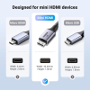 - Дозволяє підключати різні пристрої, такі як телевізор, ноутбук, проектор. Кабель сумісний з роз'ємами mini HDMI та HDMI 2.1.