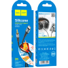 Конектори кабелю, виготовлені з алюмінієвого сплаву, стійкі до корозії, мінімізують втрати сигналу, гарантують надійне з'єднання та чистоту звуку. Зовнішнє силиконове обплетення не рветься, витримує чисельні згинання, відрізняється стійкістю до високих та низьких температур, є повністю безпечним для людини, підвищує зносостійкість кабелю та запобігає заплутуванню дроту, забезпечуючи зручність зберігання та використання.