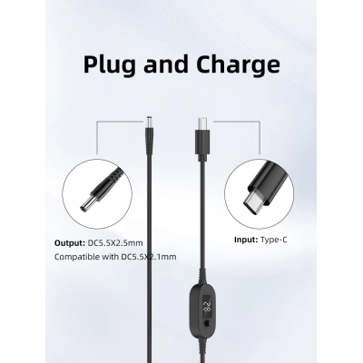 Тип підключення: USB Type-C → DC 5.5×2.5 мм
