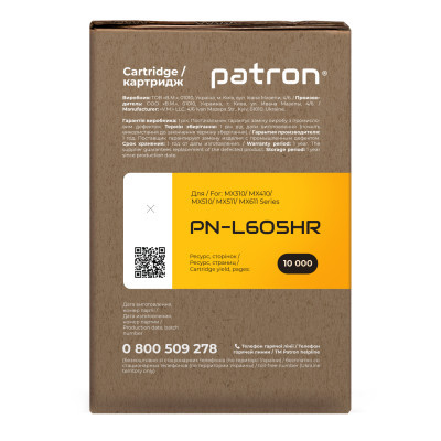 Extra з 2004 року. Це реальний продукт, виготовлений в нашій країні. Тонер-картридж сумісний Lexmark 60F5H00 Extra Patron (PN-L605HR) гарантія