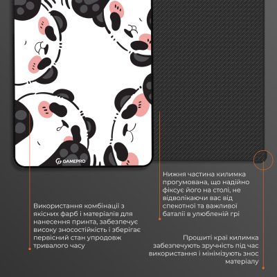 З ігровим килимком від GamePro кожен рух миші буде точним, а кожна дія — максимально ефективною. Це не просто аксесуар, а інструмент, що дозволяє повністю розкрити потенціал улюбленої гри.